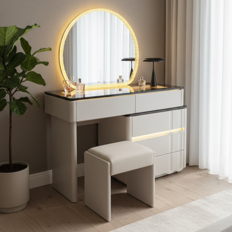 Glamour Grove Dressing Table & Vanity Set Modern Simple Luxury with Mirror & Poof Chair