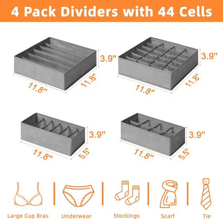 4 Pack Underwear Organizers, Foldable Closet Organizers and Storage for Bras, Socks, Underwear, Ties