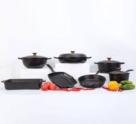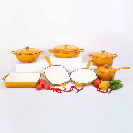 Enamel Cast iron cooking pots Ceramic Enamelled Cast Iron Cookware Set, Oven and Grill Safe