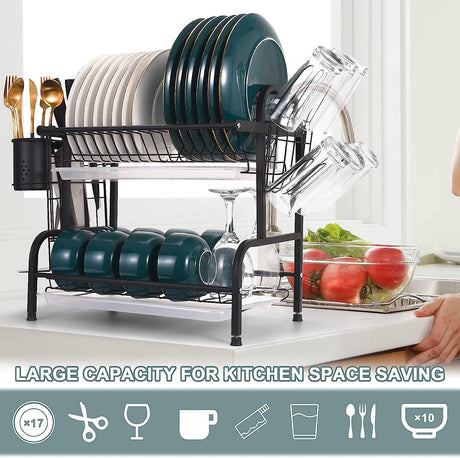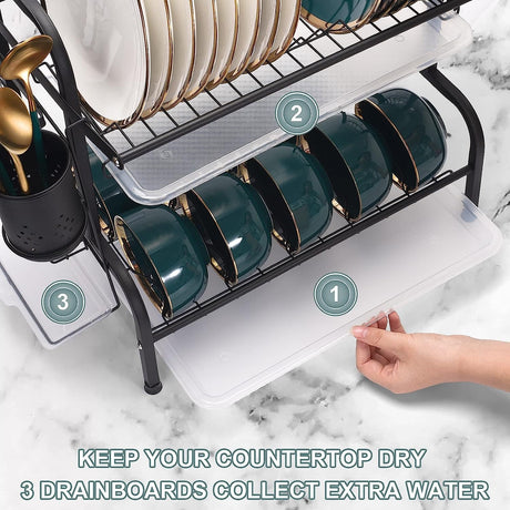 3 Tier Dish Racks for Kitchen Counter, Dish Drainer Rack Stainless Steel