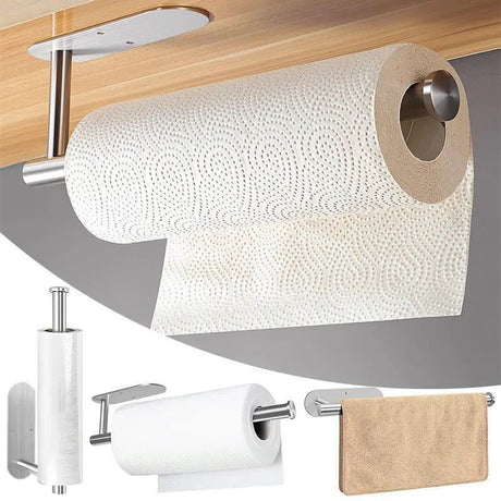 4 in 1 Metallic Under Shelf Paper Towel Rack with Hooks
