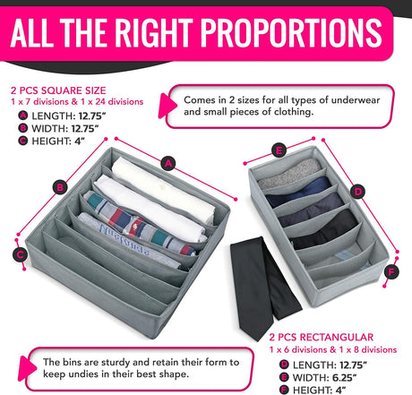 Closet Drawers Organizer Storage for Underwear, Bra, Socks and Clothes