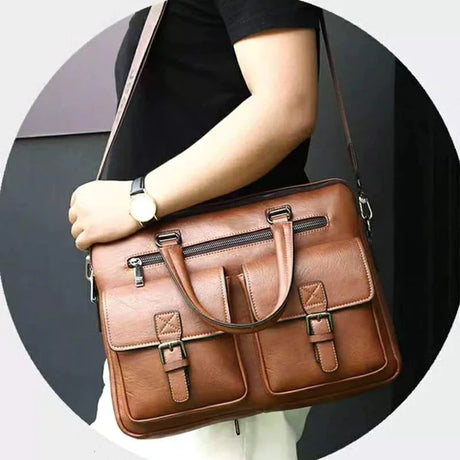 Men‘s Retro Business Handbag Large Capacity Laptop Briefcase Simple Satchel Bag