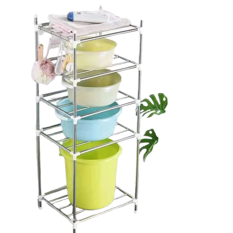Multi Functional Movable Trolley Storage Rack Plastic Shelves with Metallic Stand and Wheels