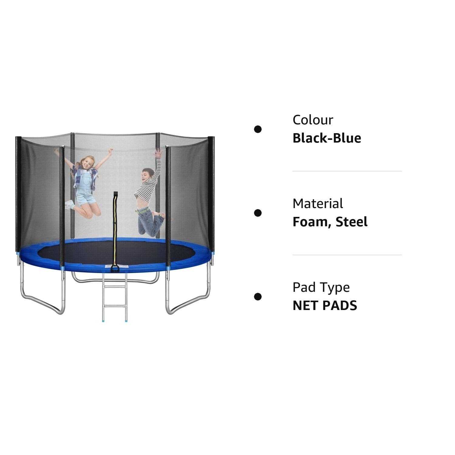 - ❥Fully equipped trampoline: bounce mat, steel ladder, netted safety enclosure, spring pulls and necessary tools are included.
