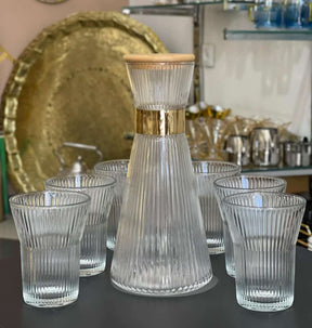 7 Pcs Set Quality Ribbed Flute Shaped Carafe Glass set