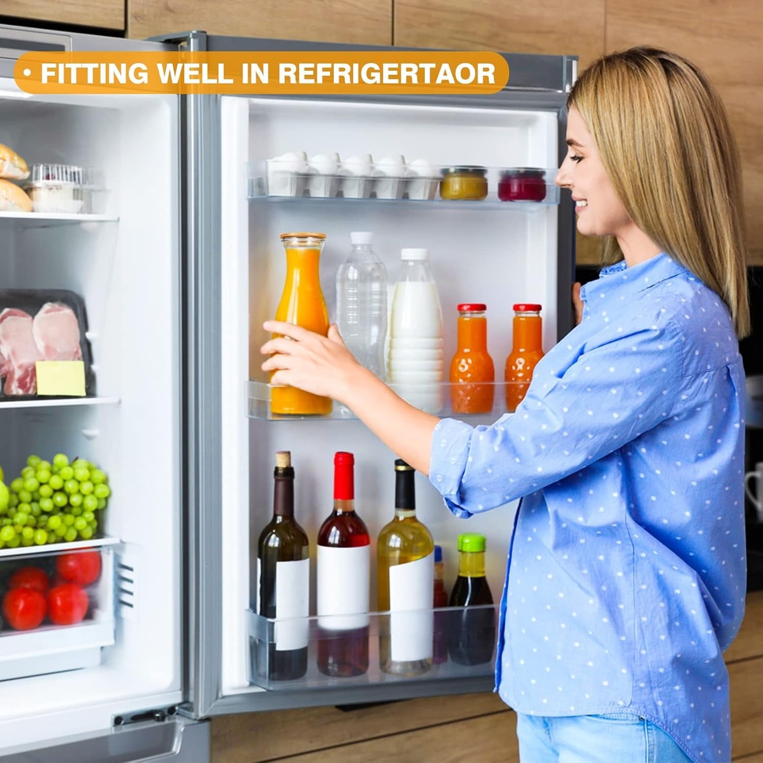 - GLASS CARAFE SET】Set includes 4 glass carafes, each jug is 10.4 inches tall and 3.6 inches wide, just the right size to fit perfectly in the refrigerator door and compartment, while providing an airtight seal to keep drinks fresh.