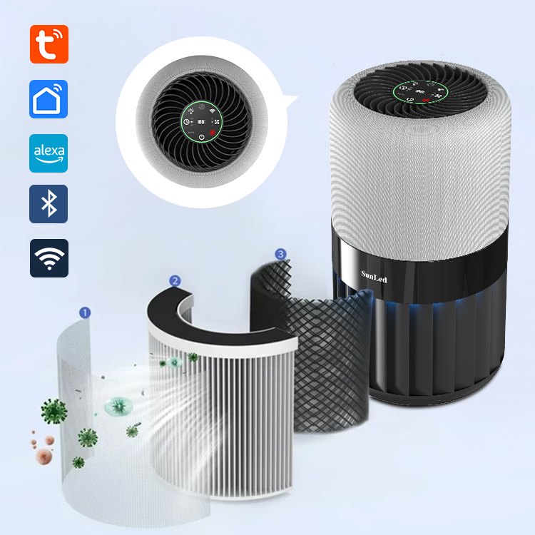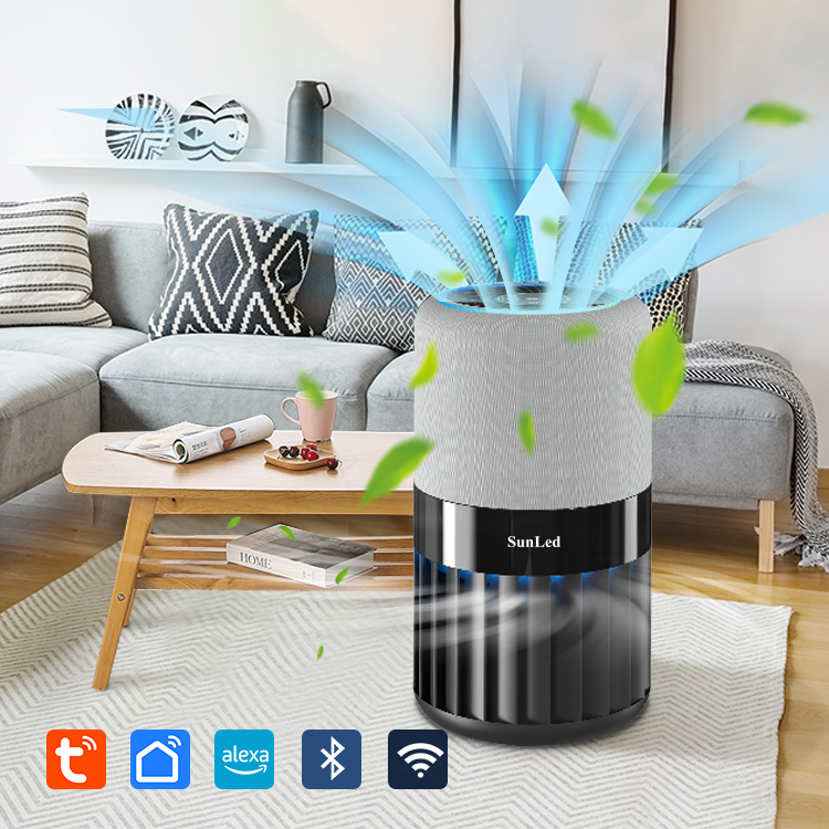 SunLed Low Noise Tabletop Smart True HEPA Air Purifier with a TUYA Wifi Digital Display of Air Humidity and a 4-color Air Quality Indicator Light