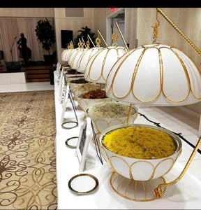 This 8 litre egg shaped chafing dish comes with a transparent lid and a built in electric heating base to keep food warm throughout your event. The large 8 litre capacity holds enough stew rice or pilau to serve 20 to 25 guests — ideal for weddings harambees birthdays or corporate events.