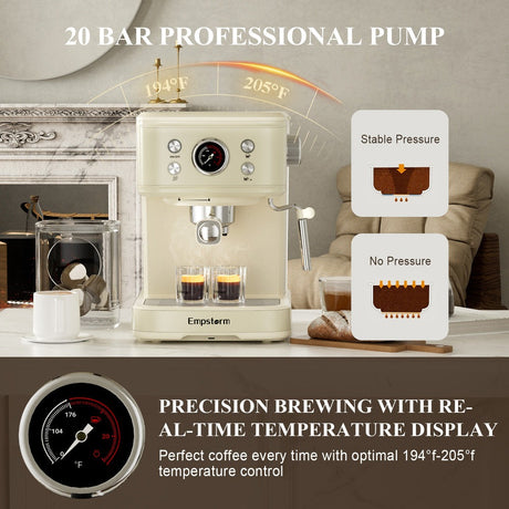 Empstorm® Espresso Machine 20 Bar EM-04E | Semi-Automatic Coffee Maker with Milk Frother