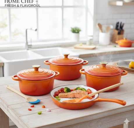 Sale price KSh9,999.00 Regular price KSh12,500.00Unit price /UnavailableVery low stock 7 PCS Enamel Cast Iron Cooking Pots Set Non-Toxic, Oven-Safe Pots for Kenyan Kitchens