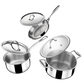 Stahl Triply Stainless Steel Cookware Set Combo | Frying Pan, Sauce Pan & Pot with Lids is backordered and will ship as soon as it is back in stock.