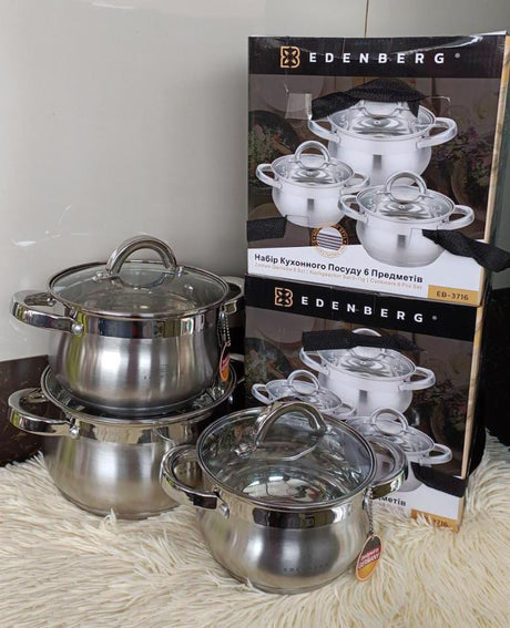 Edenberg 6-Piece Stainless Steel Cookware Set | Pots with Glass Lids Kenya