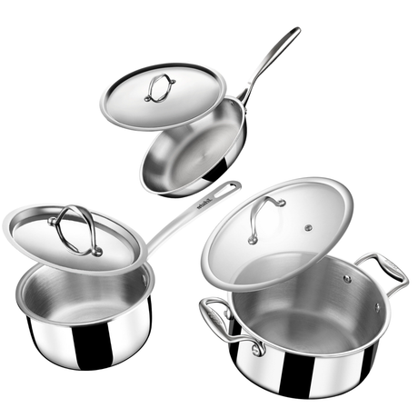 Stahl Triply Stainless Steel Cookware Set Combo | Frying Pan, Sauce Pan & Pot with Lids
