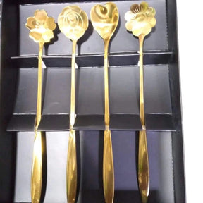 Long Golden Honey/Tea/Ice cream Spoons - 4pcs Set