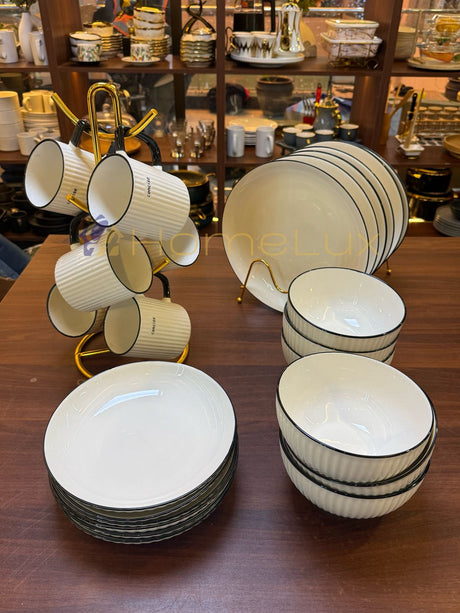24pcs Black Gold European Porcelain Dinner Set - Elevate Your Nairobi Home