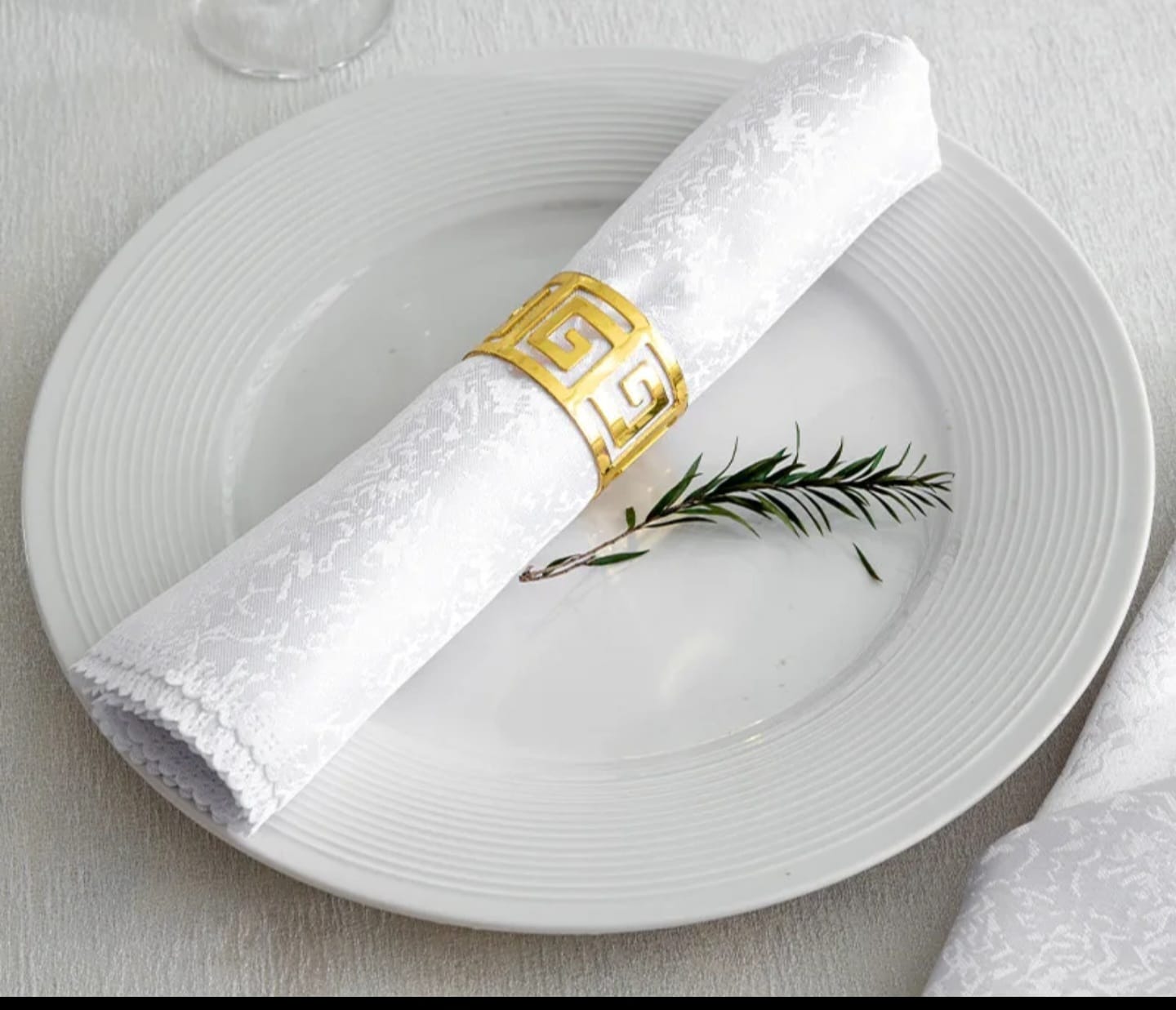 Elevate your table settings with these sophisticated gold-plated aluminum napkin rings, the perfect finishing touch for weddings, formal dinners, and festive celebrations. Lightweight yet elegant, they add a touch of luxury to any occasion without the weight of traditional metal rings. Their durable gold plating resists tarnishing, keeping your table décor looking pristine through multiple events. Ideal for creating memorable place settings that impress guests and enhance your dining experience, whether you're hosting an intimate dinner party or a grand reception.