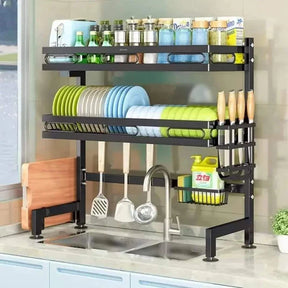 The Double Layer Sink Stand Dish Rack is a must-have for your kitchen! Not only is it designed to hold multiple dishes, but it is also double-layered for extra storage and convenience. It is perfect for freeing up counter space while still keeping all your dishes organized and easy to access. Invest in yours now and start streamlining the cleanup process!