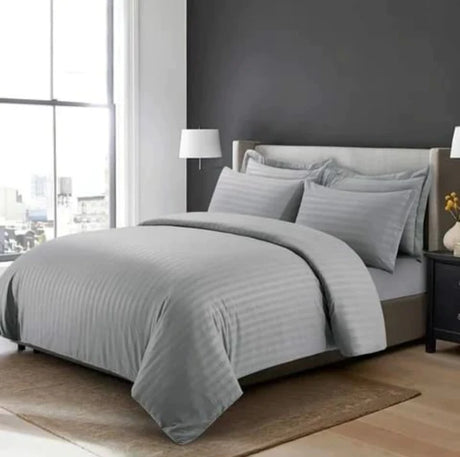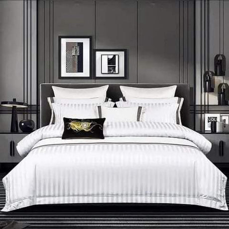 6*7 Stripped Cotton Duvet Cover Set White