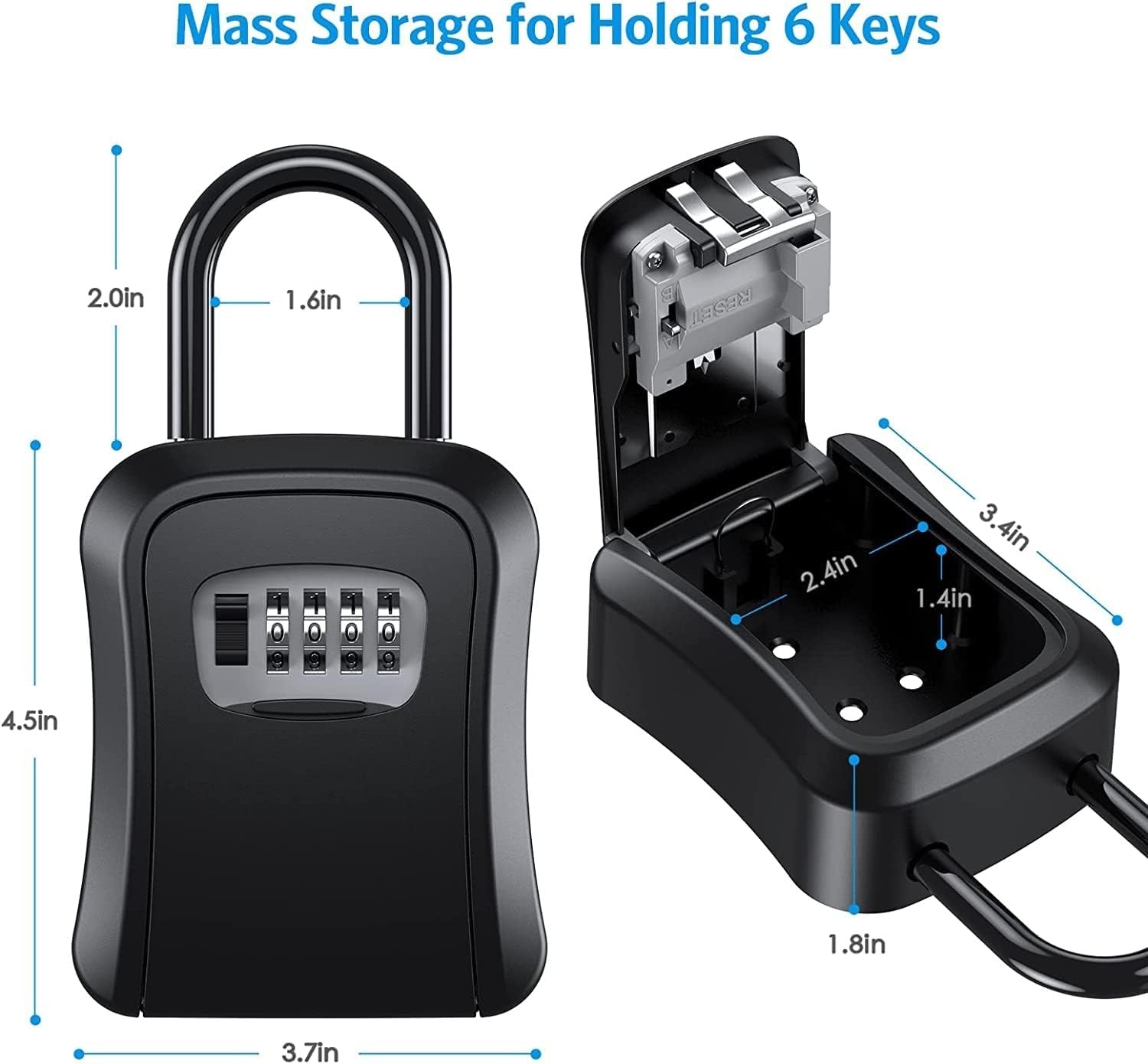 - 🔑【Large Capacity 】The lock box can storage 5 house keys or 3 large keys. The key lock box inside size around: 2.17*1.38*1.14inch. It offers up to 10,000 combination possibilities, you can set the password you want.