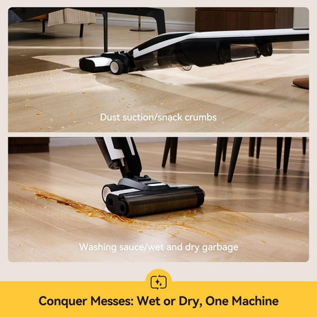 Deerma Wet Dry Vacuum Cleaners for Home, 180°Lie-Flat Cordless Vacuum Mop All in One with Voice Prompts Edge Cleaning Self-Cleaning Vac Mop for Hard Floors Sticky Messes and Pet Hair Quick Cleanups