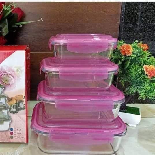 This borosilicate glass storage set comes in four practical sizes and three soft colors blue green and pink to help you organize meals easily. The containers are safe for the oven microwave freezer and dishwasher making them ideal for cooking storing and reheating Kenyan staples. Each lid has a silicone seal to prevent leaks during transport to work school or church events.