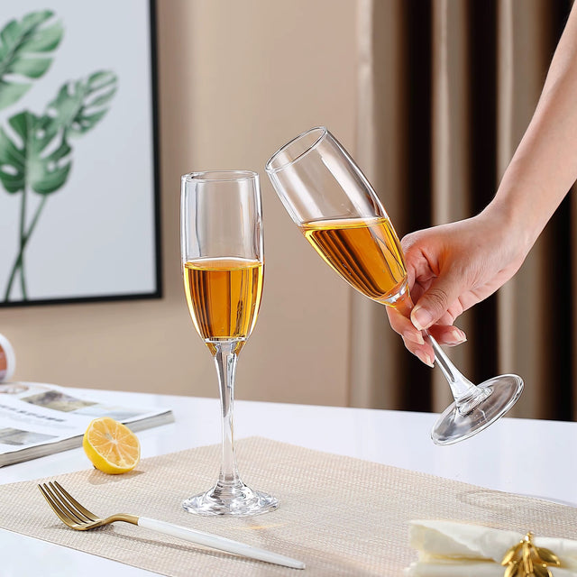 Classic Champagne Glasses Set of 6, 6oz Glass Champagne Flutes, Stemmed Champagne Flutes, Sparkling Wine Glass for Party, Wedding and Home - Clear