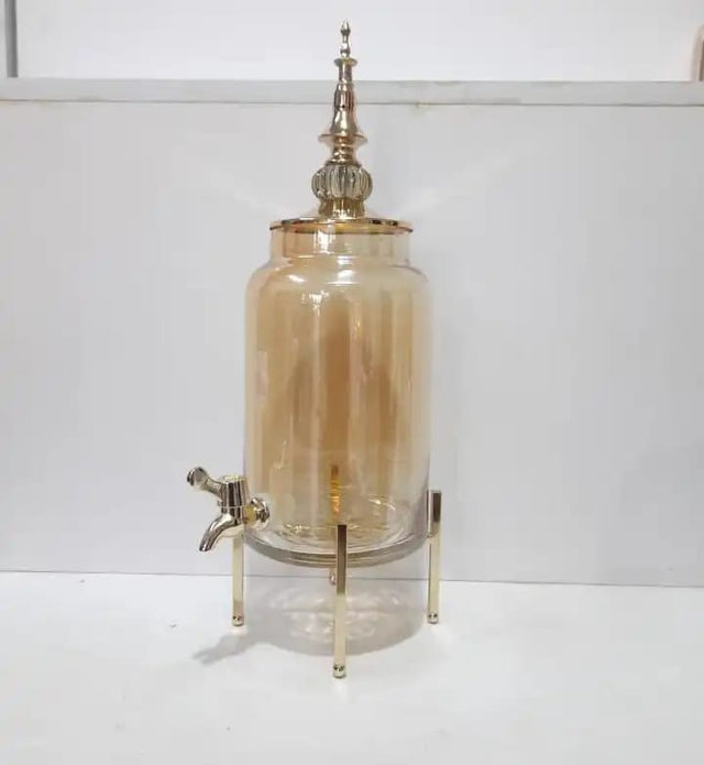 Elevate your beverage service with this elegant small decanter featuring a convenient tap. Crafted from high-quality glass with a stylish gold accent, it holds up to 1.5 liters, perfect for serving a variety of drinks. The integrated tap allows for easy pouring without lifting the decanter, reducing spills and making it ideal for gatherings or everyday use. Its compact size fits comfortably on tables or countertops, adding a touch of sophistication while keeping your refreshments accessible. This decanter combines practicality with refined design, making it a must-have for any stylish home or event.