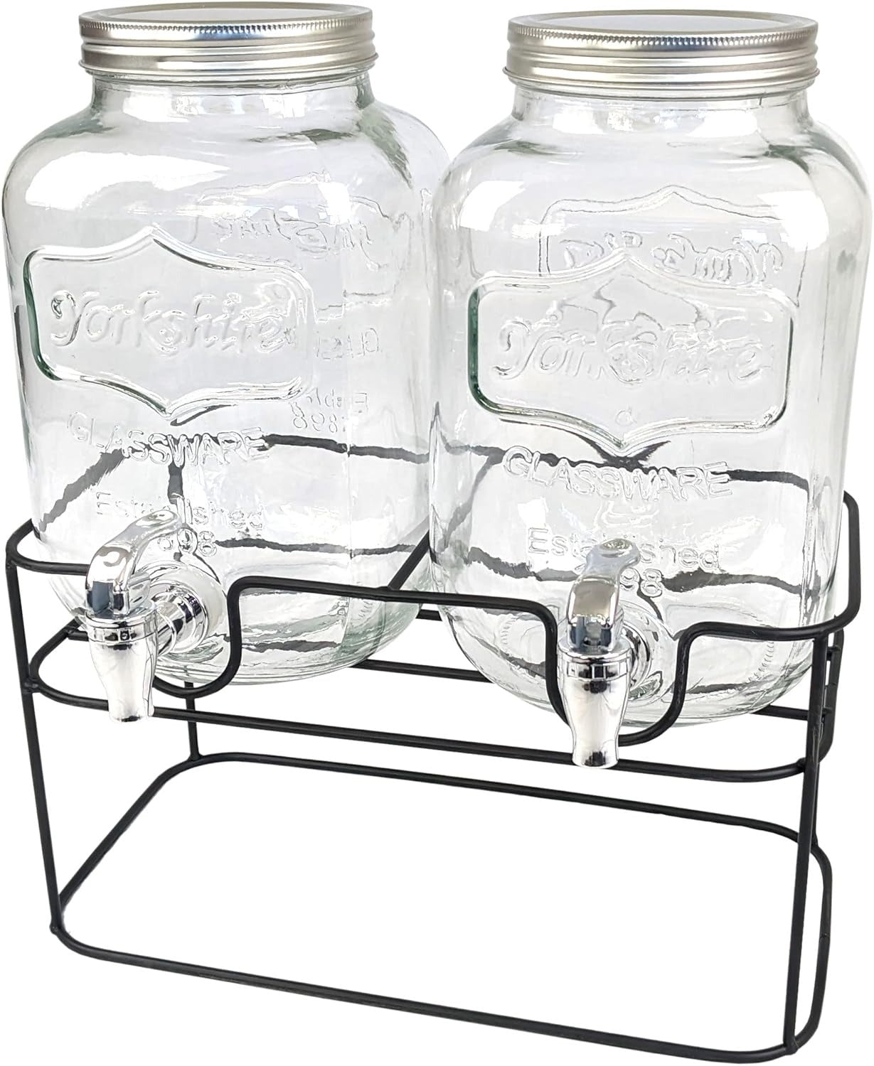 Experience the ultimate in style and functionality with our Double Glass Juice Dispensers. Crafted with premium materials including glass and a sturdy metallic stand, these dispensers will elevate your beverage serving game.