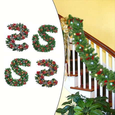 2.7M Christmas Garland decoration with pinecones,red berries