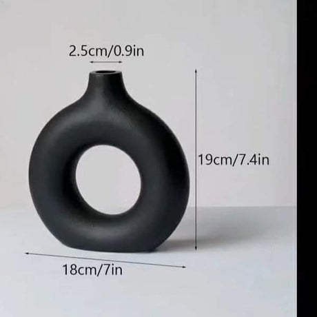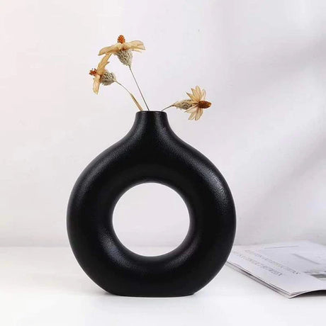 Black Donut Shape Ceramic Flower Vase
