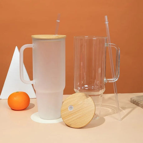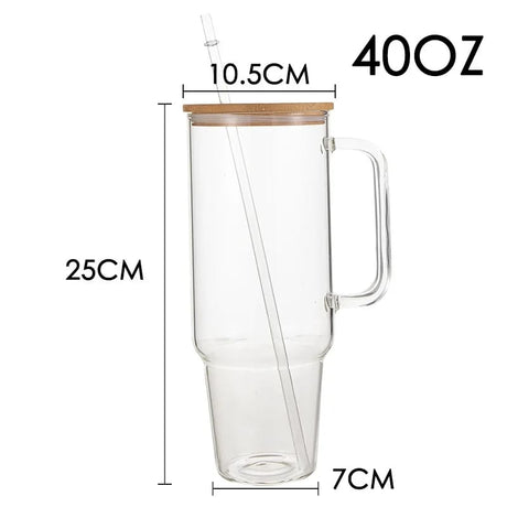 Borosilicate Bamboo Drinking Glass Cup Tumbler with lid and Straw