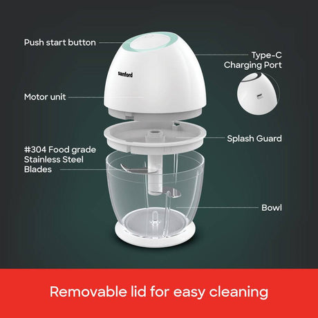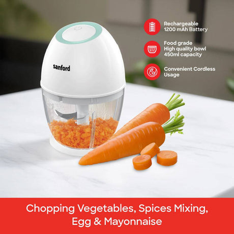 Sanford 900ml Food Chopper with Stainless Steel Blades and Egg Beater Attachment