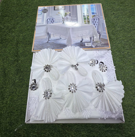 Elegant White Dining Tablecloth Set with Napkins & Rings