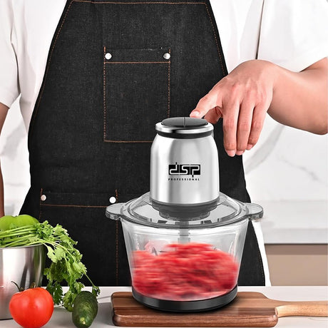 DSP Food Chopper with Meat Mincer 3L Glass Bowl 2 Speeds 6 Blade Set