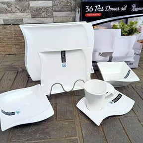 White Plain 36pcs Rectangular Shaped Dinner Set