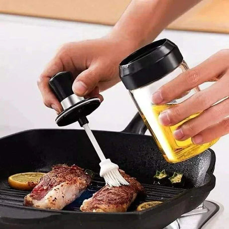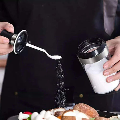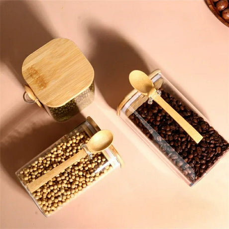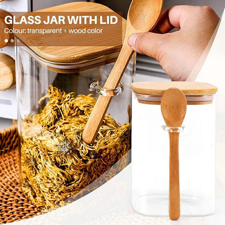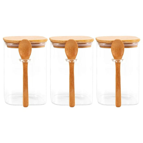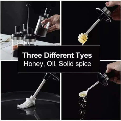 Glass jar with honey dipper, oil brush or spice scooping spoon 3pcs