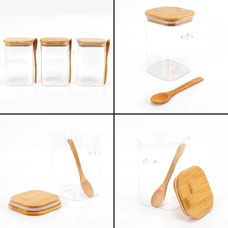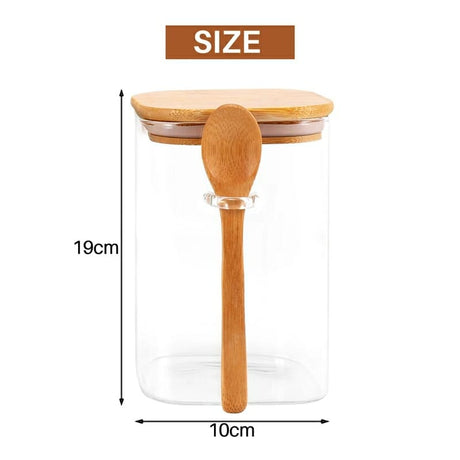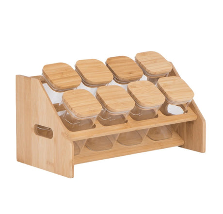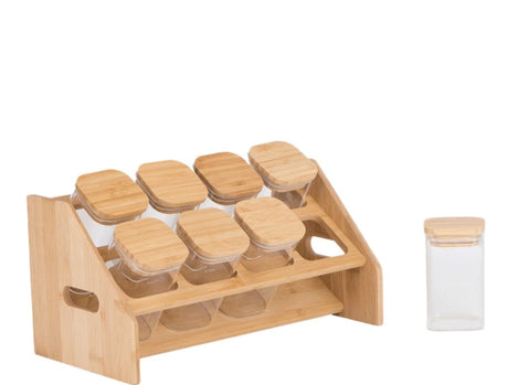 8pcs Square Borosilicate Glass Spice Jar Set – 300ml with Bamboo Lids, Rack, Labels & Pen