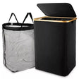 🍇 Bamboo and cloth materials make this laundry basket a durable and functional solution for your laundry needs. With its foldable design and lid, it saves space while keeping your laundry organized and out of sight. Available in black and measuring 65*45*35cm, this basket has a generous 100L capacity. Get yours today! 🍇