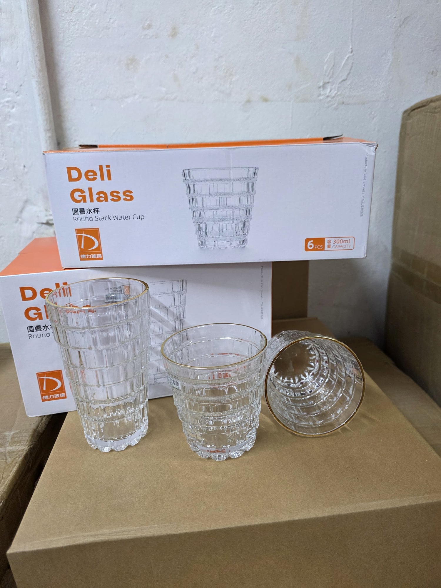 6pcs Set Clear Highball Stackable Water Juice Crystal Glasses Cup With Gold Rim. - 300ml is backordered and will ship as soon as it is back in stock.