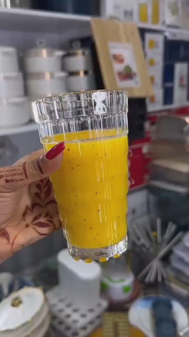 Bring a touch of class to your table with this elegant set of stackable clear glass cups. Each glass is beautifully designed with a gold rim finish, perfect for serving water, juice, cocktails, or soft drinks in style.
