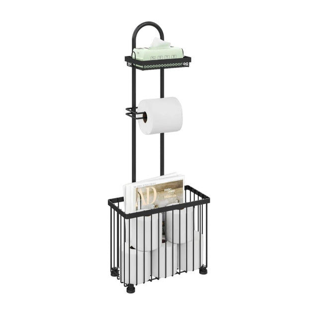 Freestanding Toilet Paper Holder Toilet Tissue Rack Scroll Stand Roll Dispenser with Storage Shelf Reserve for Phone Tablet Magazine Bathroom Organizer Bath Tissue Organizer