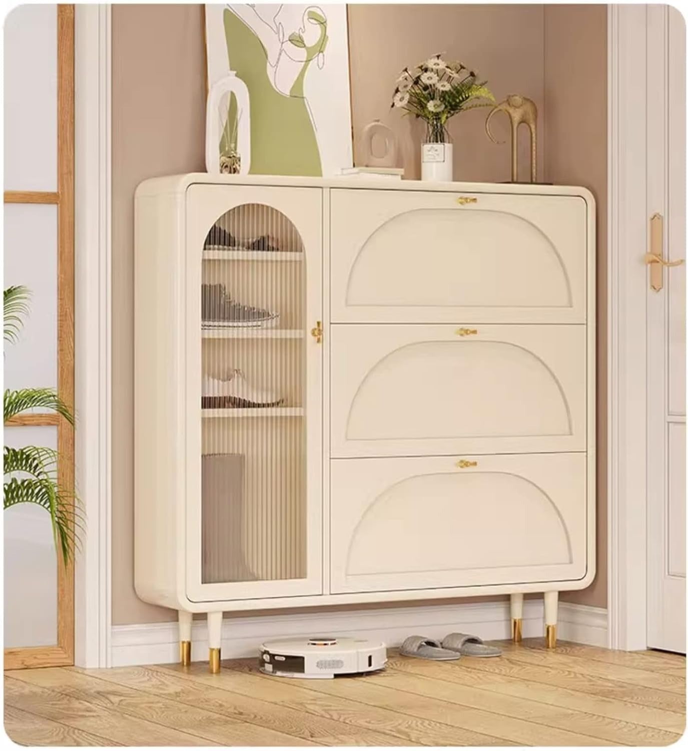 - STYLISH SHOE CABINET Add a touch of elegance to your home with this stylish Nordic touch shoe cabinet. Make it a high-end furniture that will enhance any living space. With stainless steel legs