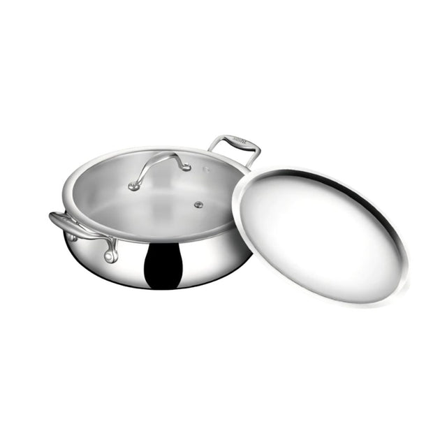 Stahl Stainless Steel Pot Triply Biryani Handi Cookware with Glass Deep 3-Layer Cooking Pot | Gas & Induction Compatible, Oven-Safe | Perfect for Pilau, Rice, Stews & Family Meals