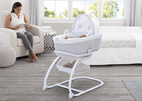The Deluxe Moses Bassinet offers a cozy and versatile sleeping solution for babies. It combines a Moses basket and a standard bassinet, allowing you to keep your little one close as you move around the house. With an attached electronic pod that plays music and emits calming vibrations, your baby will be soothed and entertained. The attached canopy also features two plush hanging toys, providing visual stimulation for your baby if they happen to wake up. Suitable for babies 0-9 months, this 2-in-1 bassinet can be used with or without the Moses basket, making it perfect for any sleeping situation. Plus, the adjustable canopy ensures your baby's naps are peaceful and uninterrupted.