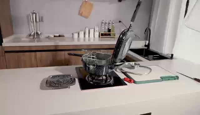 Introducing the 3 in 1 Double Deep frying pan, a versatile kitchen essential with a 3.6 litre capacity. This double deep fryer also functions as a casserole pot and frying pan with a lid, making it perfect for all your cooking needs. Plus, with its marble coating, Bakelite handle, and oil dropping knob, this pan is designed for convenience and durability. The induction bottom ensures even heat distribution while the grey and black color adds a touch of style to your kitchen. Upgrade your cooking game with the 3 in 1 Double Deep frying pan!