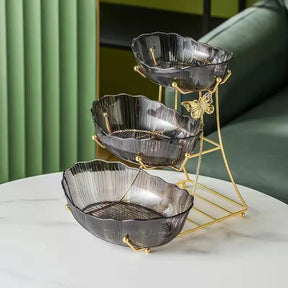 Experience the perfect combination of style and functionality with our 3-tier Fruit/Snack Stand! Available in stunning gold and grey, this stand features a sleek metallic design and durable acrylic plates. Get yours now and elevate your serving experience!