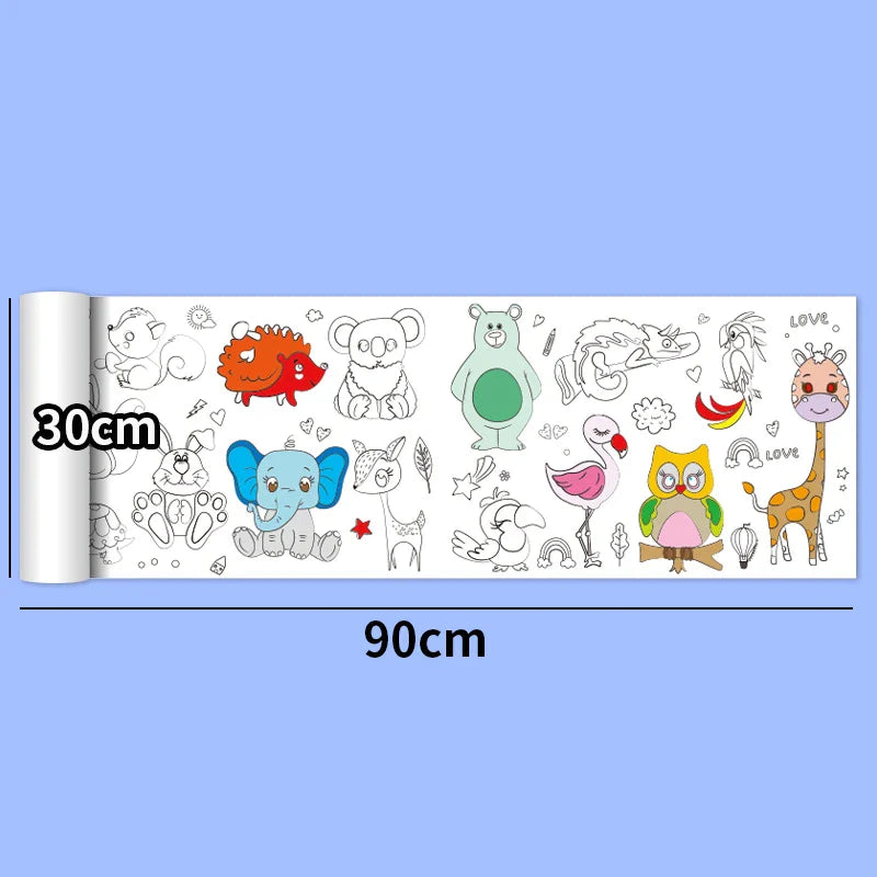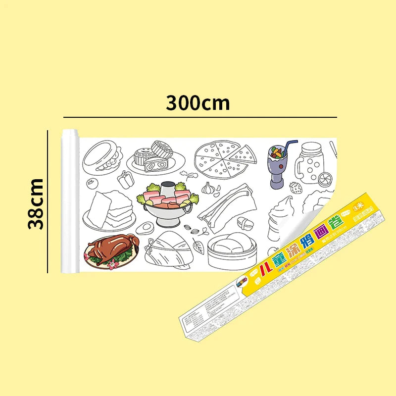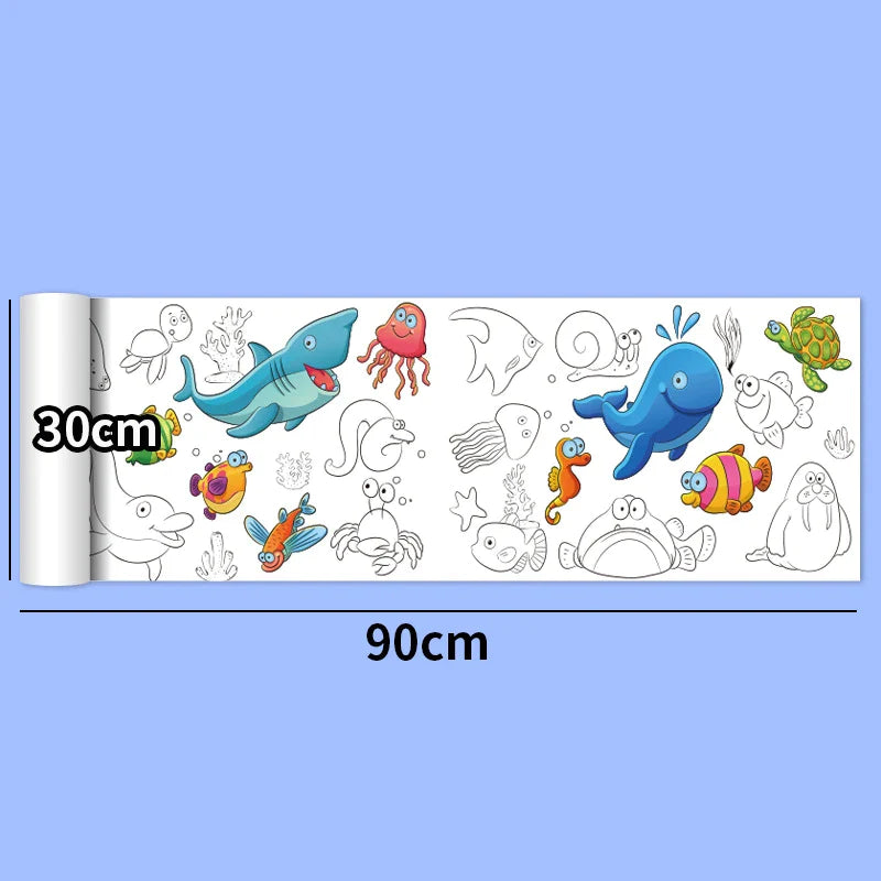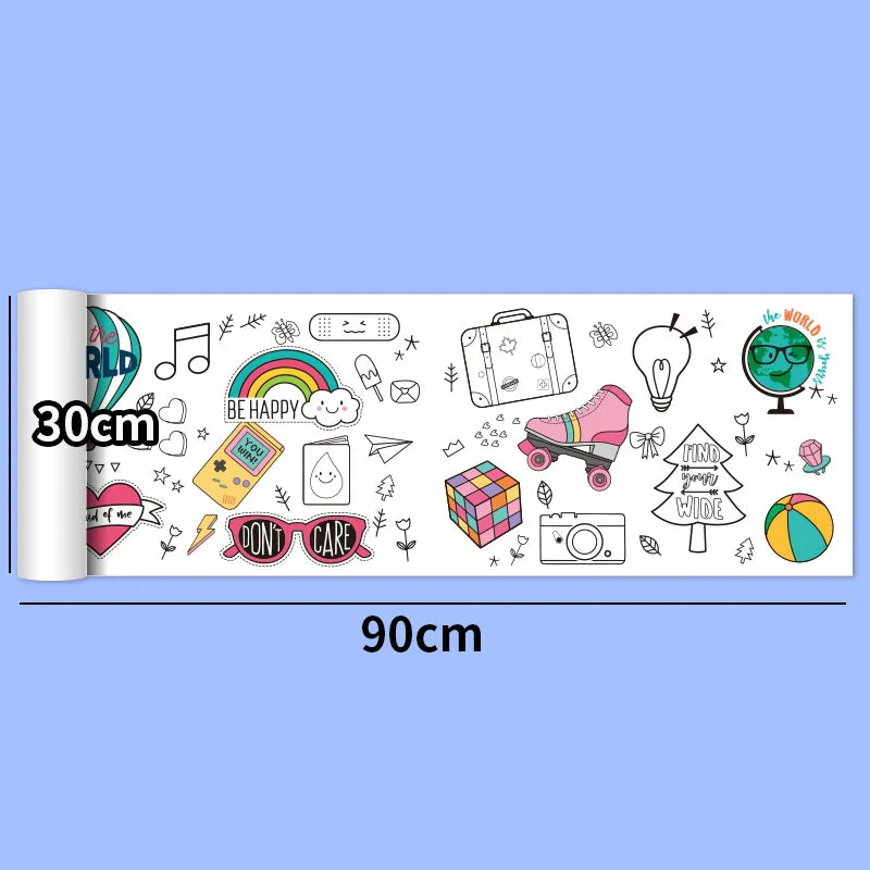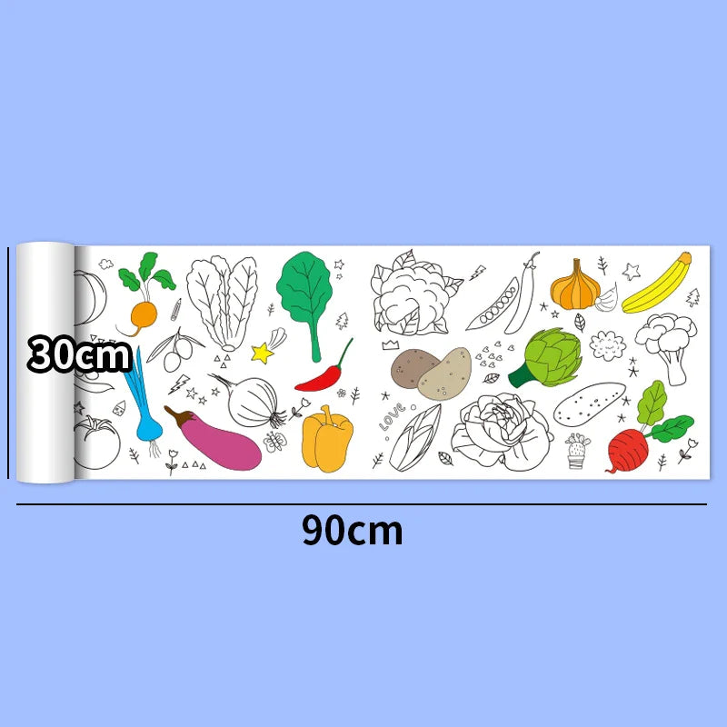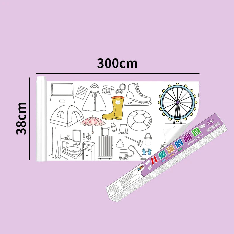 30*200cm Early Educational Kids Drawing Roll DIY Sticky Color Filling Paper Scroll