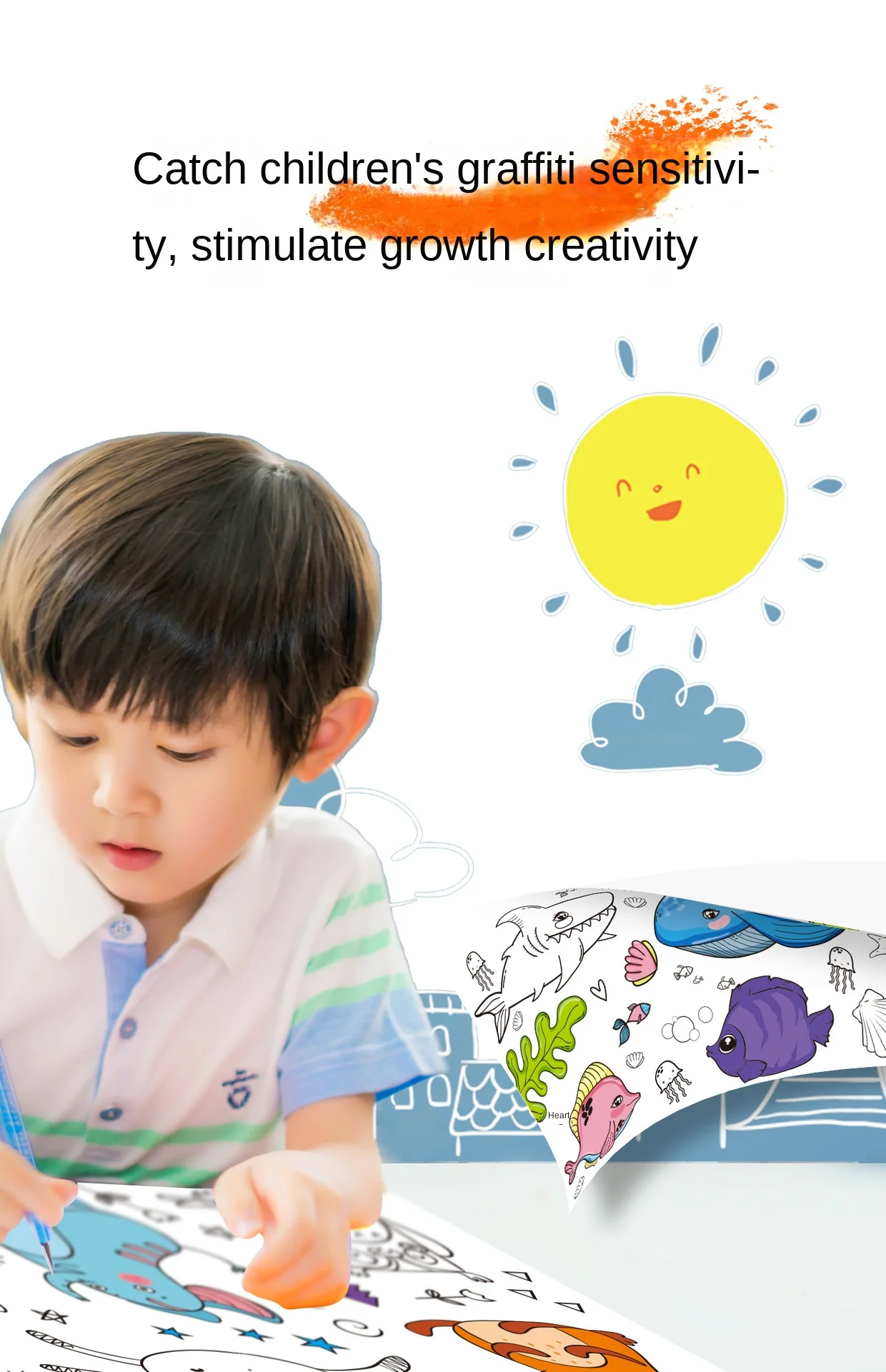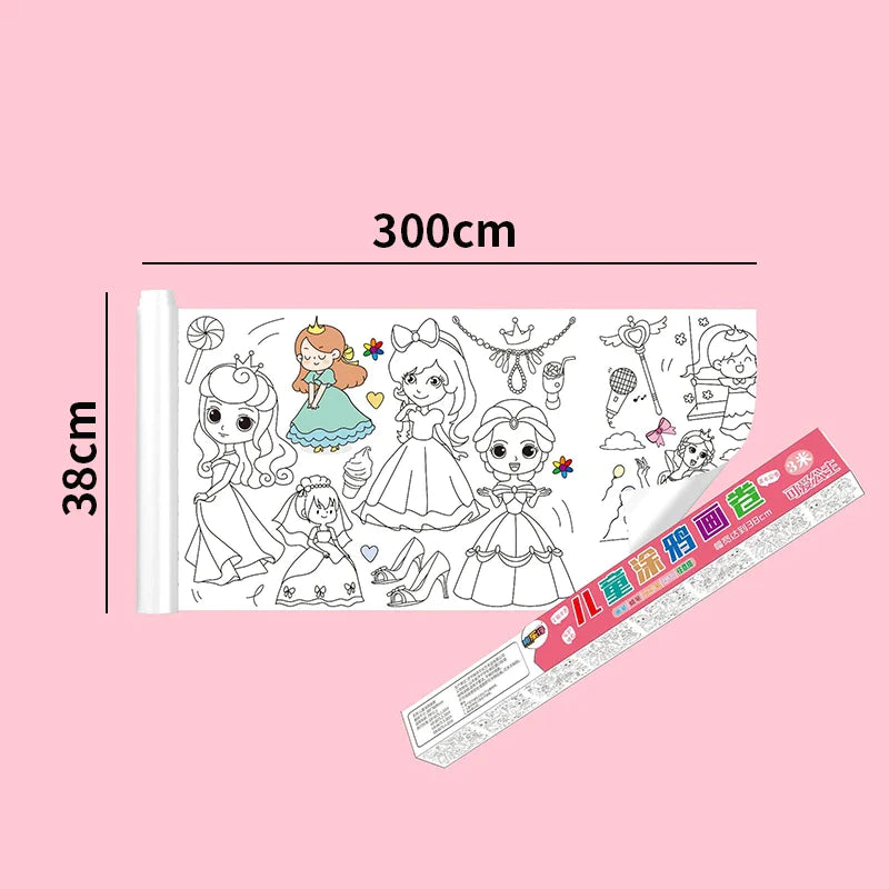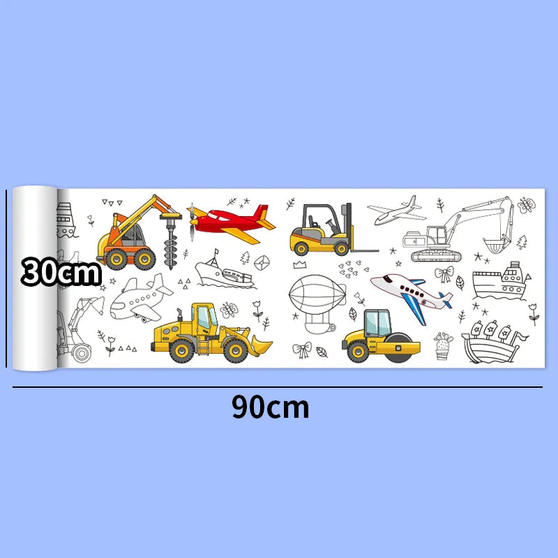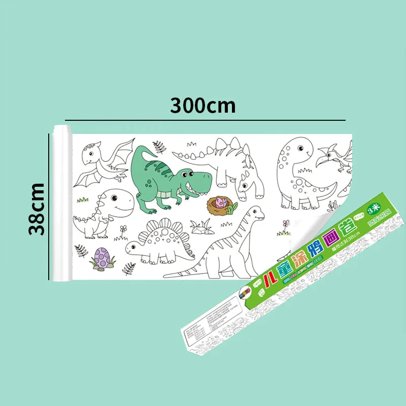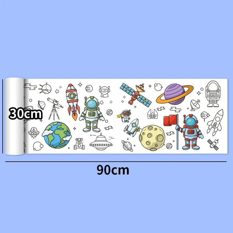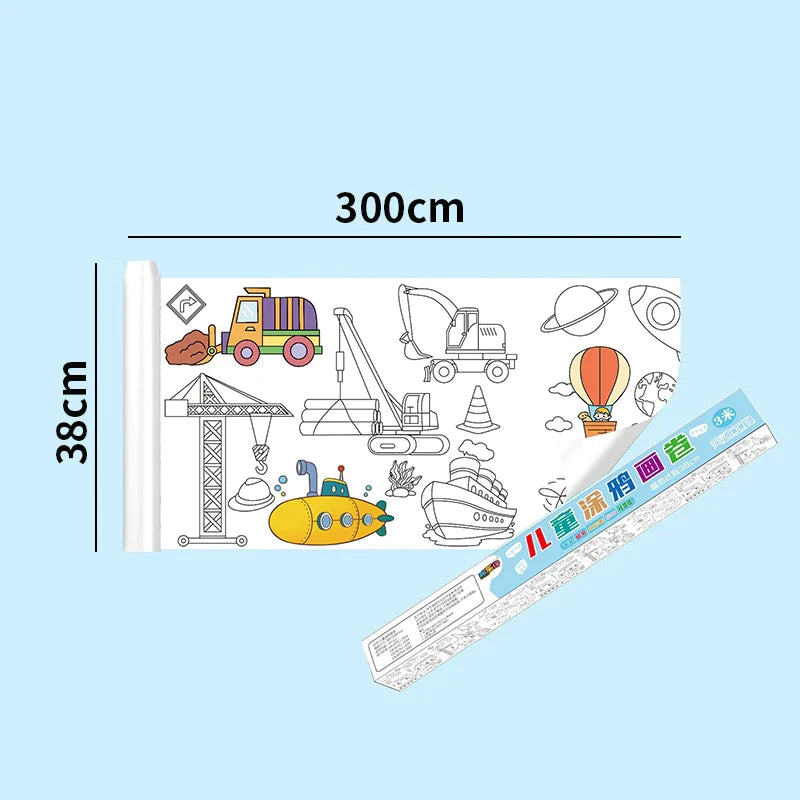 30*200cm Early Educational Kids Drawing Roll DIY Sticky Color Filling Paper Scroll