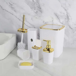 6 in 1 bathroom accessories set with gold ring.